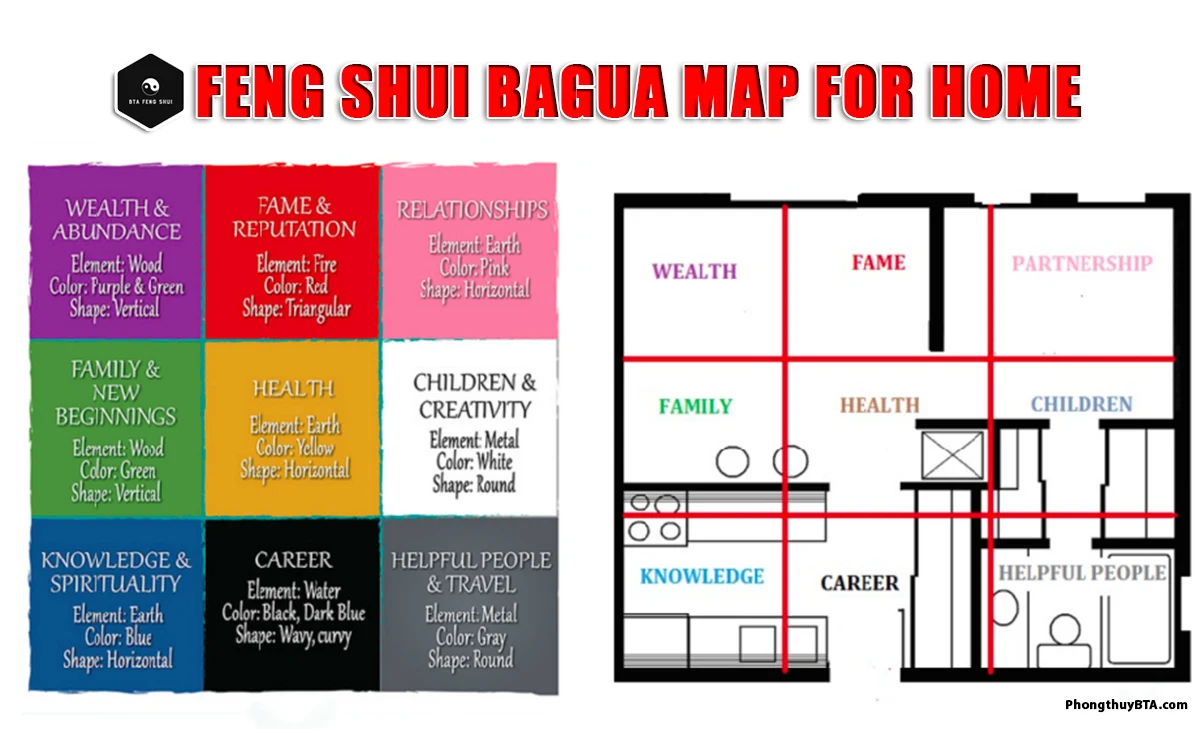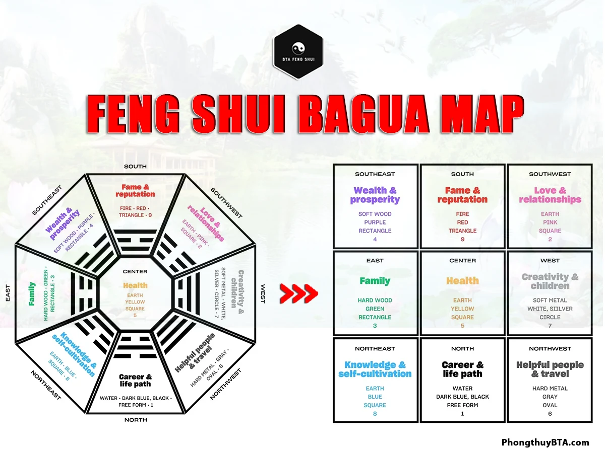 Once mapped, enhance each gua with colors, elements, and objects that align with its energy. Below, we detail each gua’s significance and how to activate it.