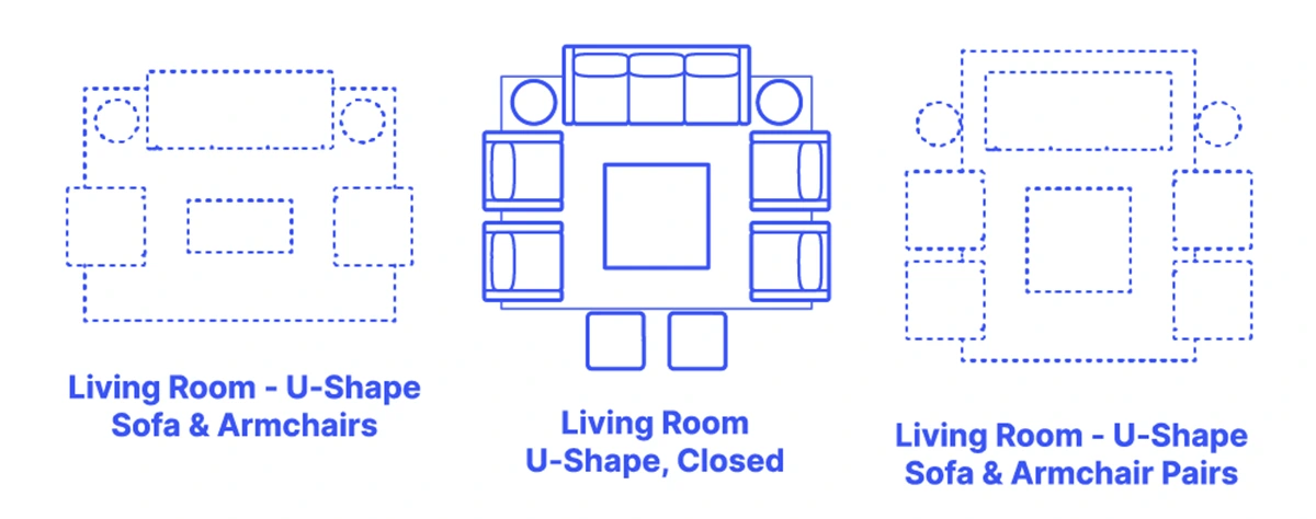 - U-Shaped: Center a coffee table to anchor the space and ensure open pathways.