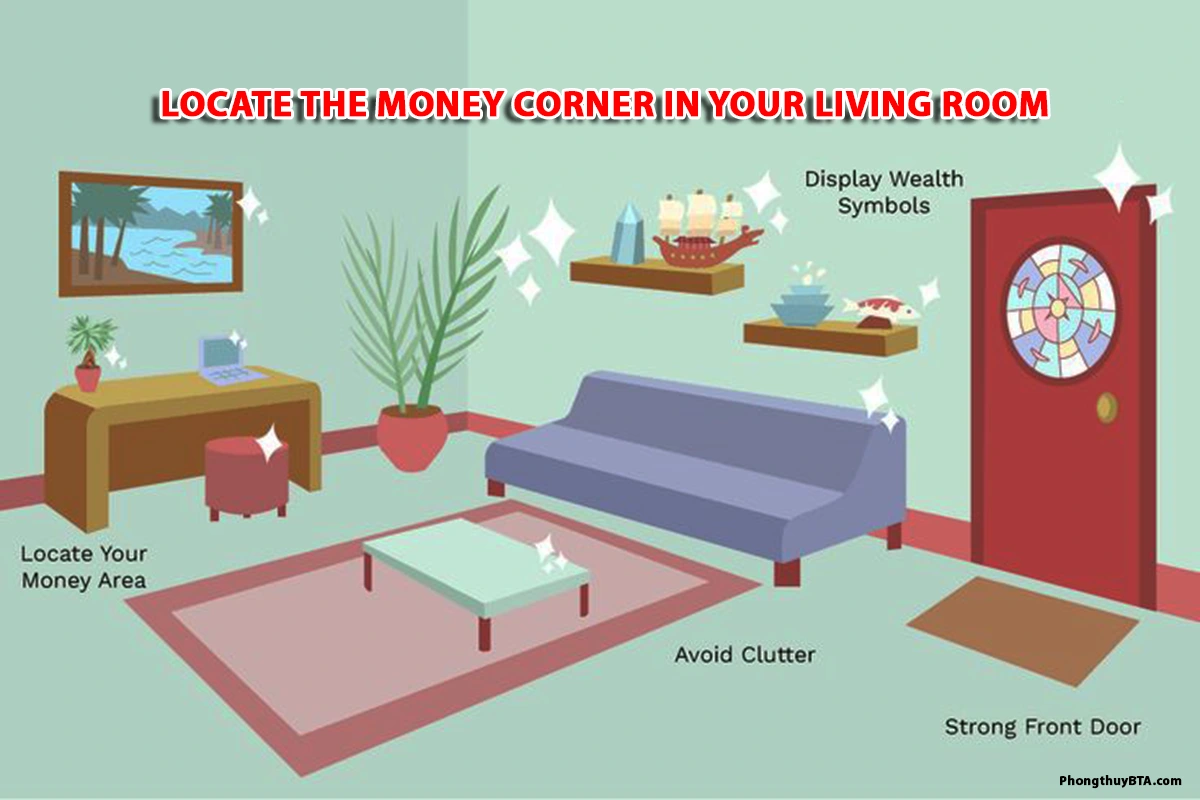 The money corner—also known as the wealth corner or Tai Wei—is a key area for attracting prosperity. To locate it, stand at the main entrance of your living room and find the far-left or far-right corner diagonally opposite the door. Enhance this area with: