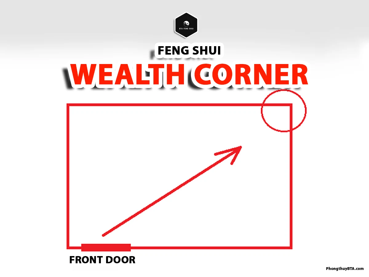 Stand at your front door facing in; the far-left corner is the wealth corner. Alternatively, use a compass to locate the southeast corner.