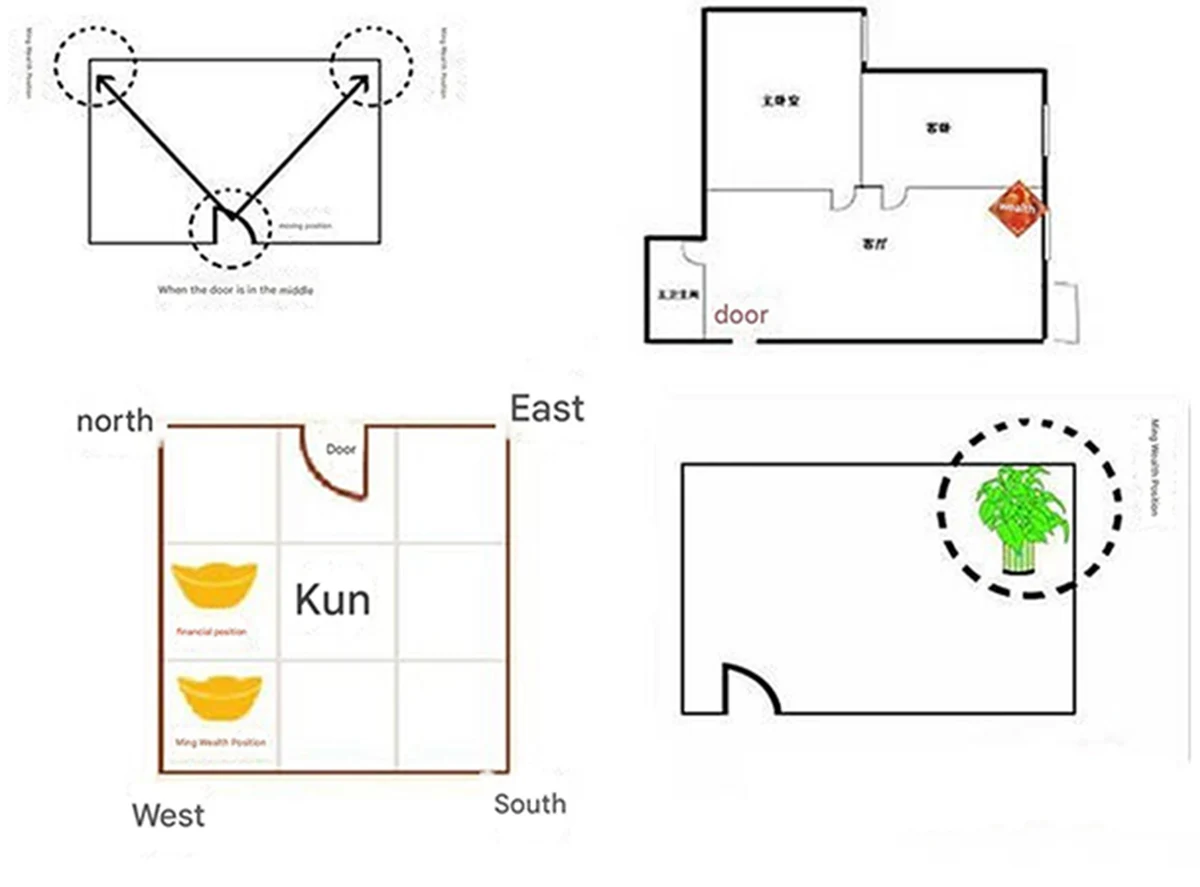 - Front Door: Ensure it opens easily and is welcoming to invite wealth energy.